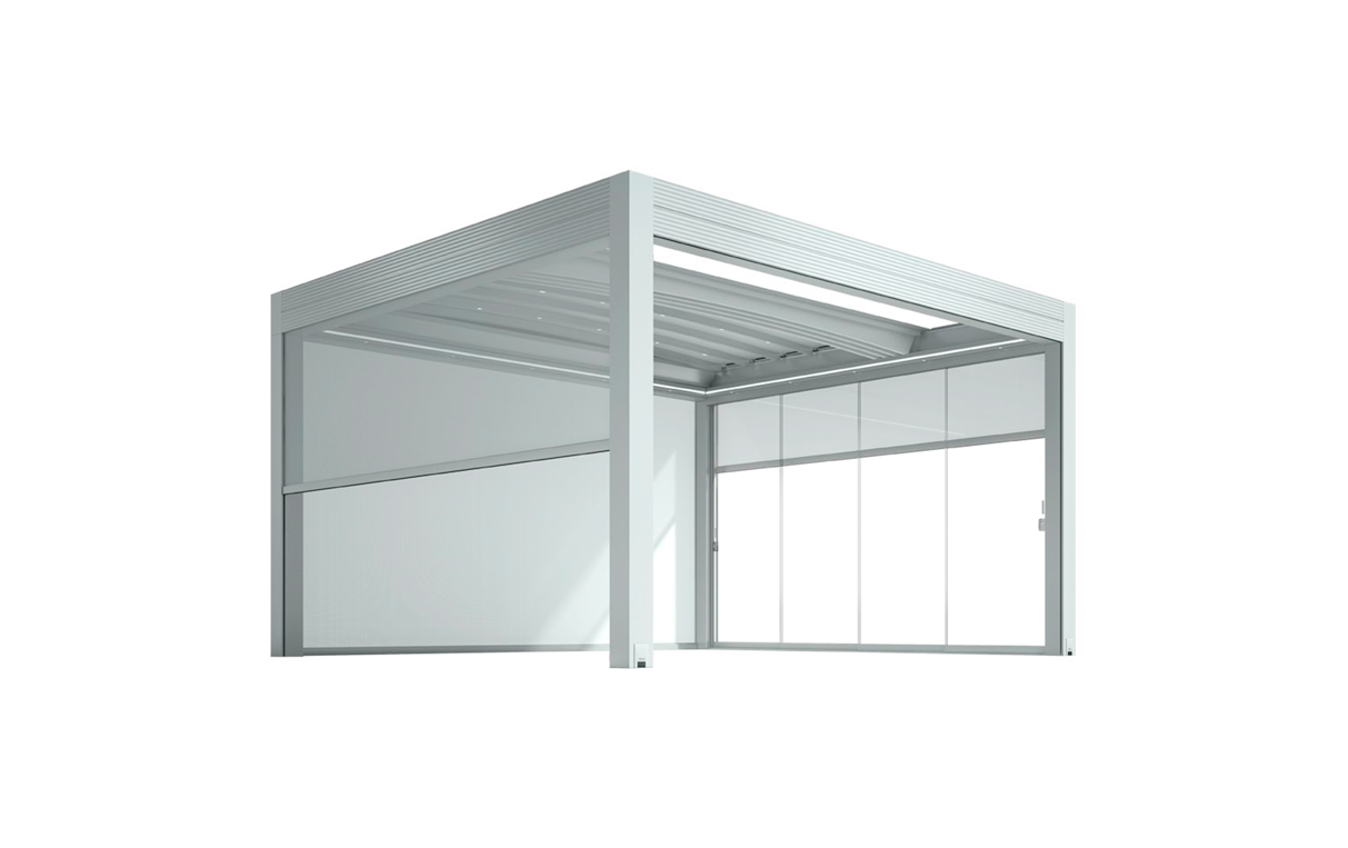 太陽(yáng)能驅(qū)動(dòng) 生態(tài)氣候涼棚 多功能自由空間 E-Twist 單幅最大尺寸: 5000×6700mm (4根立柱) 5000×7500mm (6根立柱) E-Varia 單幅最大尺寸: 5000×6000mm (4根立柱) 5000×7400mm (6根立柱)